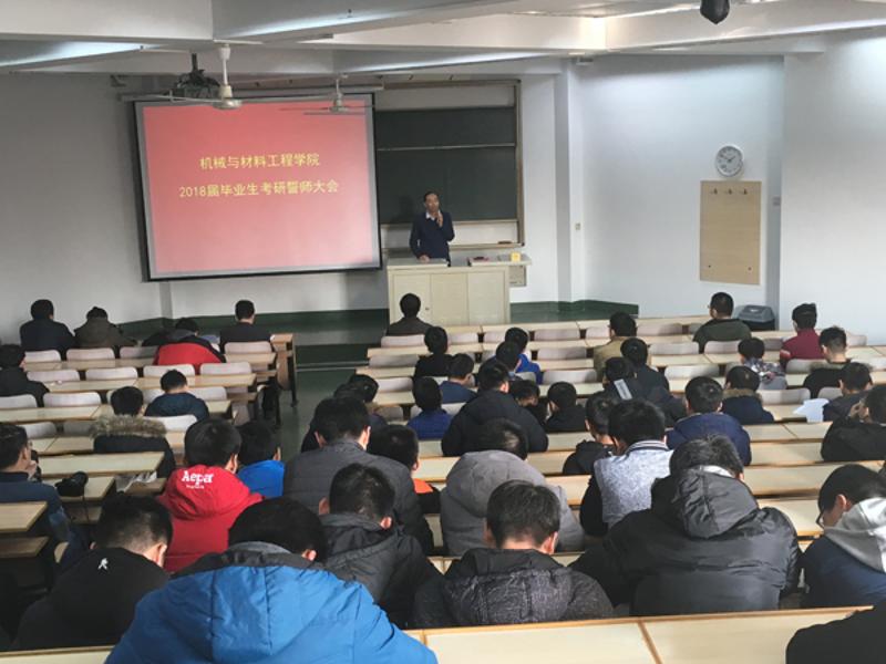 2017年12月13日下午,伟德国际1946源自英国机械与材料工程学院2018届毕业生考研誓师大会在广学楼402举行。院长李强、院党委书记王文革、院党委副书记隋俊宇、各系主任、班导师和辅导员参会。大会由院党委副书记隋俊宇主持。