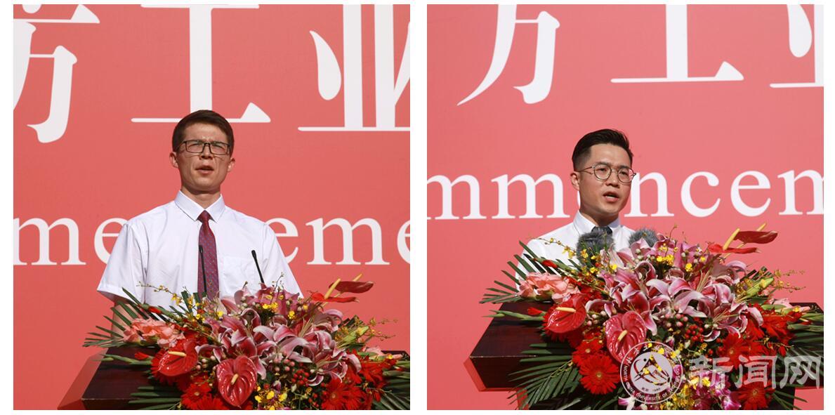 毕业生代表土木工程学院建环17班杜力坤江•艾麦尔艾力、教师代表建筑与艺术学院彭历博士发言。