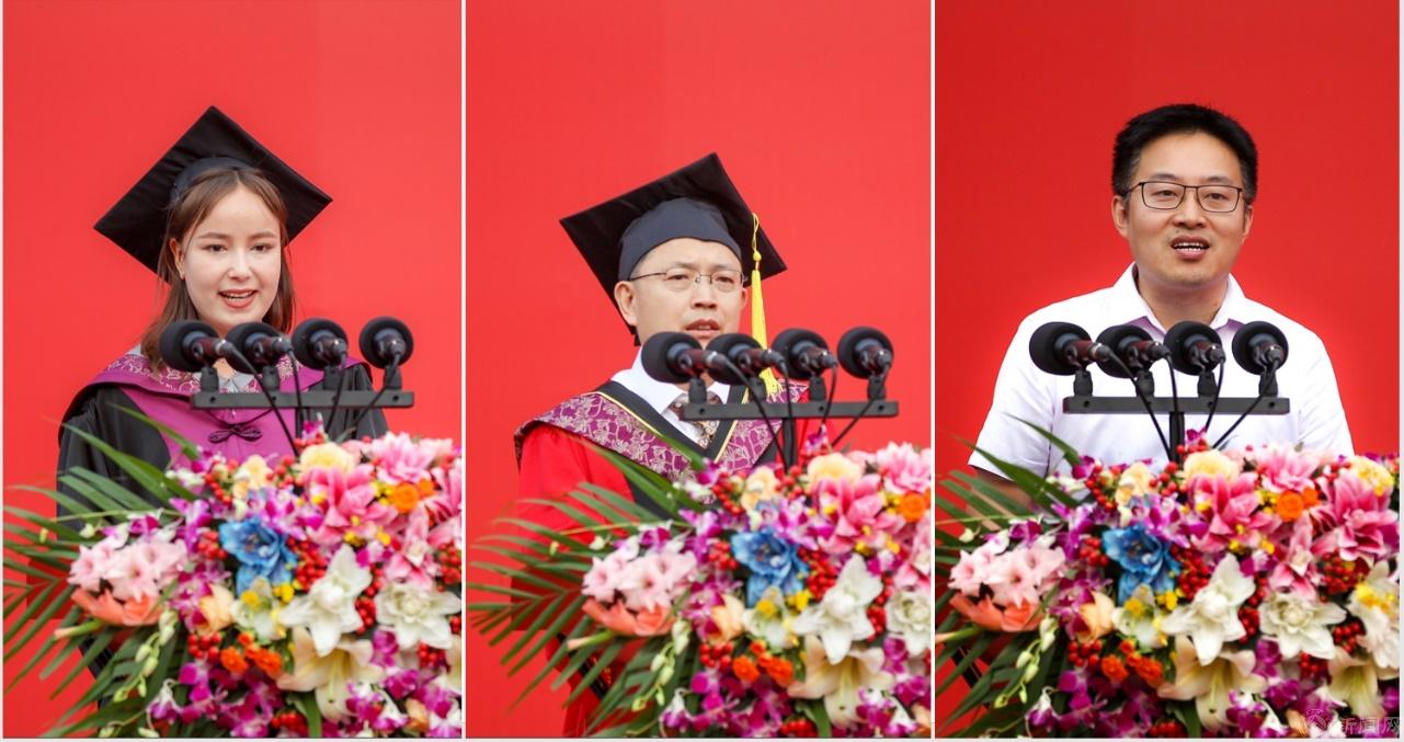 毕业生代表、经济管理学院管20-1凯丽比努尔·阿不都如苏力在发言中深情回顾在校学习生活美好时光,表示毕业后无论身在何方都将牢记“敦品励学、才德并懋”校训和“严肃、严格、严谨”校风,在各自领域发光发热,为强国建设贡献北方工大力量。教师代表、信息学院王彦平寄语毕业同学,保持对知识的渴望,养成终身学习的习惯,正确面对工作中的挫折,始终怀揣自信坚持梦想,在时代的大舞台大显身手。校友代表、电子信息工程专业2008届校友、北京科技大学博士生导师张海君教授在发言中勉励学弟学妹们要坚持学习,勇当时代弄潮儿,勇于创新敢于创新,谱写人生新华章,积极投身强国建设,为祖国建设和民族复兴添砖加瓦。