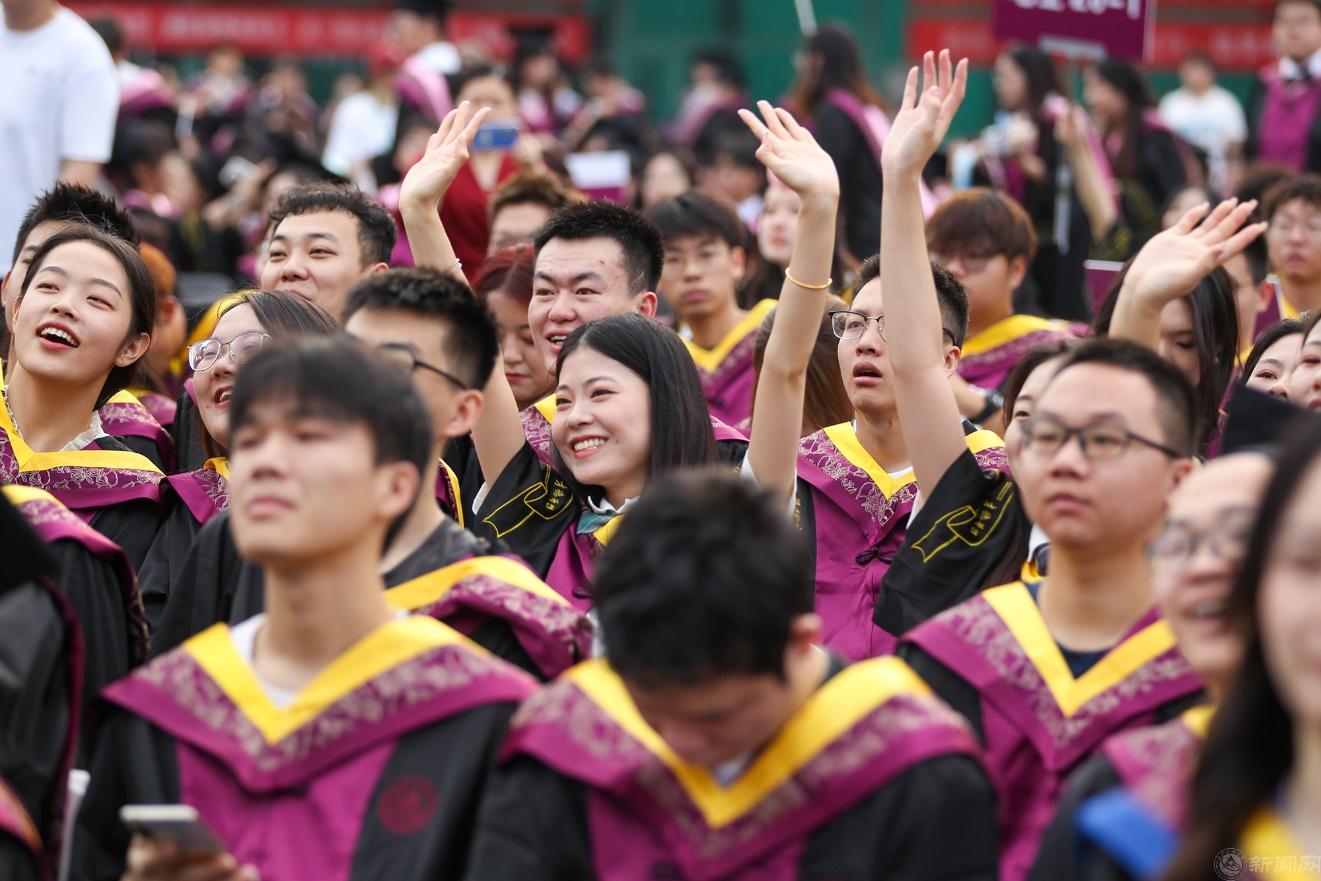 随后,学位授予仪式在体育馆二层举行,校领导、学院领导及学位委员会委员为毕业生们一一拨正流苏。