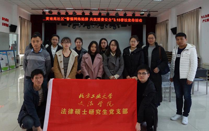 3月15日,文法学院法律硕士研究生党支部与法学本科学生第一党支部联合在八角街道黄南苑社区开展了“警惕网络陷阱,共筑消费安全”为主题的“3·15”消费者权益日法制宣传活动,20余名党员、积极分子和100余名社区居民参加了活动,活动由法律硕士研究生党支部张文兵同学主持。