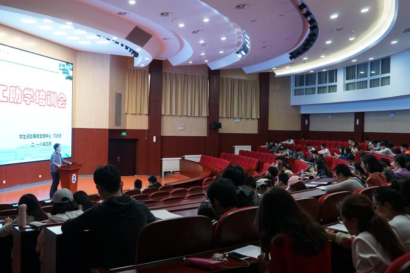 4月27日,为落实党的十九大和习近平总书记关于“全面推进精准资助和精准育人”的精神,提高学生的综合素质,在家庭经济困难学生中广泛开展“文明、礼仪、励志、感恩”教育,充分发挥勤工助学育人功能,学校学生资助事务管理中心在文化会堂组织了勤工助学岗位培训。全校在岗的所有勤工助学同学参加了培训学习。