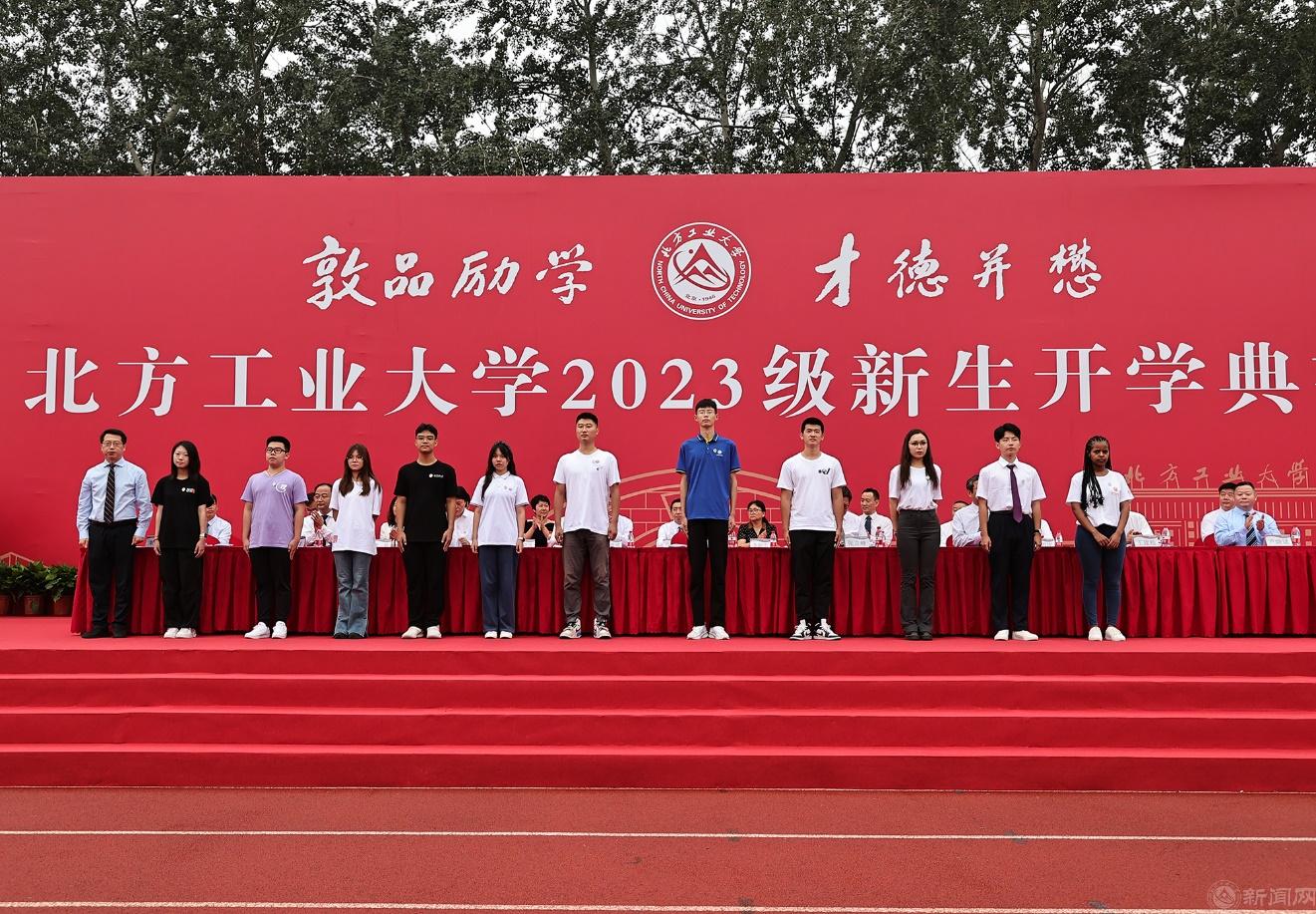 校党委书记缪劲翔为新生代表佩戴伟德国际1946源自英国校徽,欢迎2023级新同学缘聚北方工大大家庭,开启人生新征程。